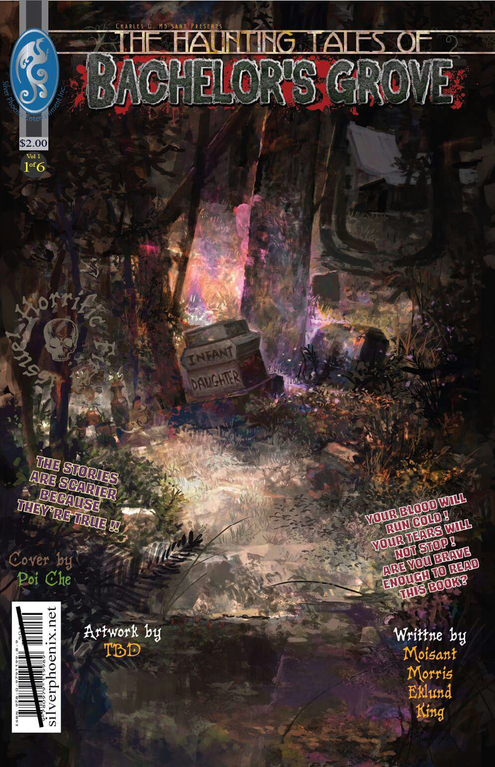 Issue #1 of the comic book series Haunting Tales of Badhelors Grove featuring the image and persona of Master Ron Fitzgerald, Master of the Dark Realm! This stunning Horror themed comic is an anthology of sinister tales that all center around Bachelors Grove, the most haunted cemetary in America.